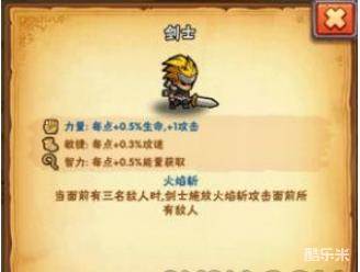疾风斩:剑士以迅雷不及掩耳盗铃之势迅速攻击4次,瞬间重创敌人。剑士每提升15点力量,可以额外攻击一次。