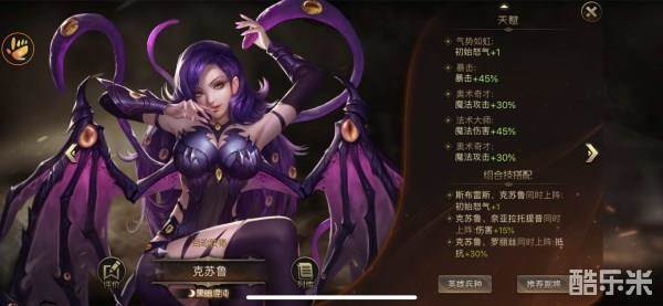 克苏鲁的天赋可以说是完全在攻击加成上了,魔法攻击+魔法伤害让其达到加倍伤害,初始怒气+1和暴击加成更是让她的攻击能力成为橙色英雄中名列前几的存在了。天赋实力:☆☆☆☆☆