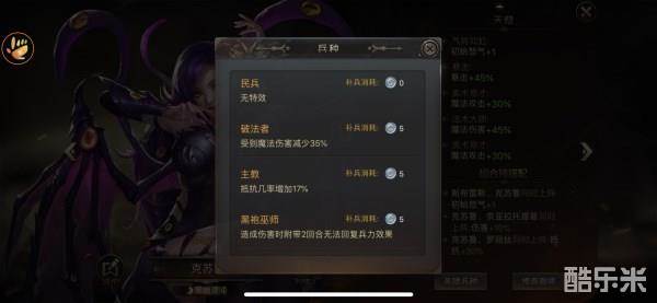 在兵种方面,克苏鲁的重点也是放在法师相关的兵种上,无论是减伤还是抵抗都是保证输出的同时又能保存自身实力。兵种实力:☆☆☆☆