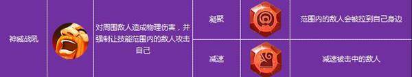 神威战吼(符文:凝聚)拳刹的招牌技能,嘲讽加聚怪,必带