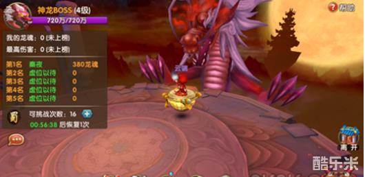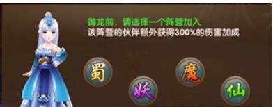 每次活动开启后,第一次进入神龙BOSS场景内,会要求选择阵营,选择后,该阵营的伙伴对神龙BOSS伤害加成300%。