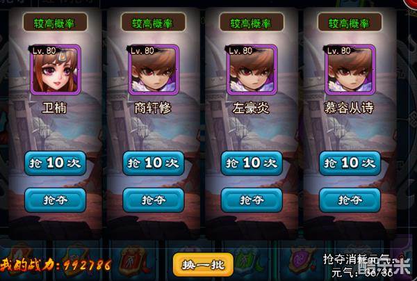 接下来就是抢夺环节,可以根据概率选择抢夺不同的人,如果觉得概率太低就可以换一批,但是连对方的实力都不显示,这让我怎么判断打不打呢。。。