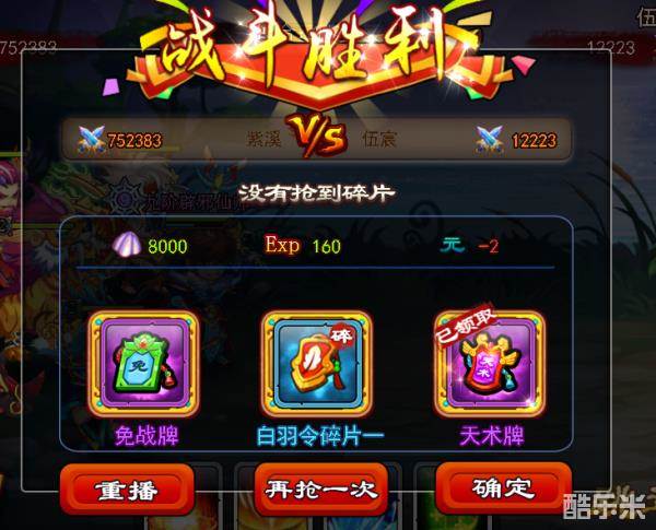 尽管胜利了,但是碎片也不是百分百掉的,这个时候可以考虑使用再抢一次的功能,直到成功抢夺为止。(这个设定实在太无情了,果然是不抢到不放弃。)
