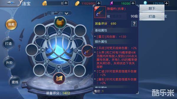 额外属性:所有法宝都拥有随机生成的额外属性词条。