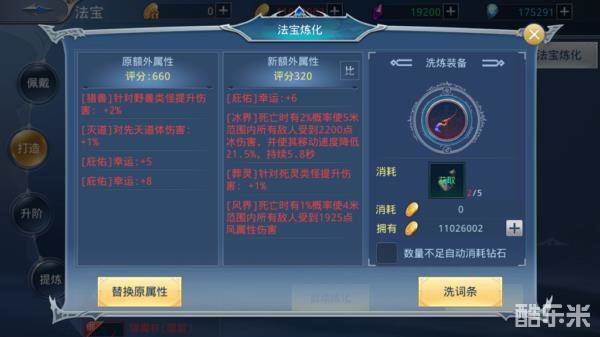 蓝色、红色和仙家法宝的额外属性可以通过洗练来重新生成。