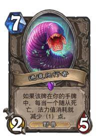 铺场职业肯定要做的一个事情就是解场,而通道爬行者可以利用随从死亡减费,只要早早上手,就可以减到很低,甚至0费2个一起拍下去,配合DK或者不稳定的异变成为8费随从甚至9费随从都赚的要死,是极低费用造极强场面的利器,当回合节奏极强,同时相比其他随从,进化成本非常低,出个伊瑟拉什么的很容易就单刷对手了。