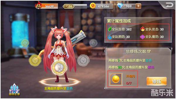 这个功能是最早开启的,基本通过新手任务后就可以使用咯,基本功能就是增加全队成员而非是主角个人的属性,需要消耗修炼丹(可通过完成剧情任务来获得),还是很有性价比的,看图哈!