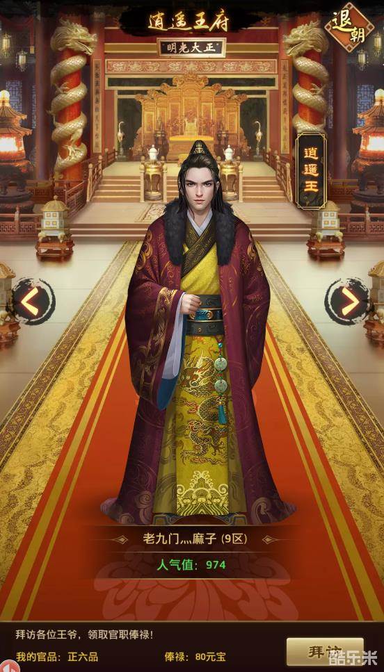 作为朝中官员,可以每日进宫请安,领取官品俸禄,官位越高,俸禄越丰厚。虽然今朝阶下请安,他日定可虎踞高台!