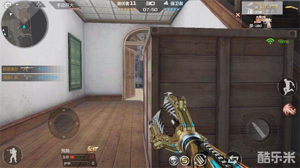 如图,这里位于家前左侧凉亭,既可探查中路横道、又可倾听阁楼有无敌方人员,且因墙体掩护,安全性有保证。实际操作中,小伙伴目标应放在阁楼小门,做法是实施预瞄并尽量依靠墙体(减少暴露面积),即:敌方人员若是前压则必然近距离进入小伙伴谋划已久的枪口中,只要命中率不成问题那么一枪将之淘汰非常简单。