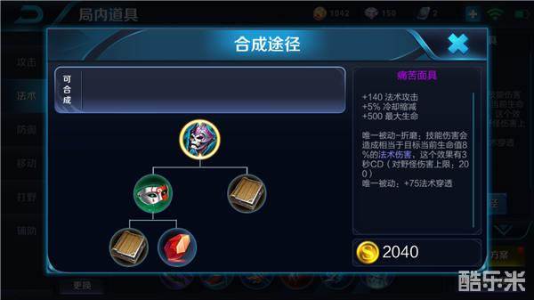 之前说了两件物理输出的装备,第三个我们就来说一个法术攻击的装备。痛苦面具是现在所有的法术类英雄都会出的一件装备,因为想要打出足够的法术伤害必须有一定的法术穿透能力,我们来对比一下痛苦面具和另外一件法术穿透装备虚无法杖,在面板上几乎是各有各的长处,痛苦面具多了一些冷却缩减但是虚无法杖在法术攻击强度上略胜一筹,所以说比较有可比性的就落到了被动上。虚无法杖的被动就是简单的增加英雄的法术穿透能力,痛苦面具的被动是有两个方面的,比较简单的就是增加英雄的法术穿透能力,还有一个可能小伙伴们一时半会凭文字无法理解,还是要在实战中去体验,这个被动并不是根据法师英雄的法术强度来打伤害,而是根据目标的生命值来计算伤害,简单的说就是当目标生命值越多的时候这个被动打出的伤害也就越多,当目标值生命越少的时候,这个被动的威力就很一般,这个被动技能能够很好的帮助法师英雄在团战开始之前消耗敌人。
