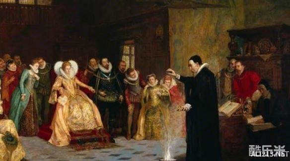 图中是约翰·迪伊在女王伊丽莎白一世面前在做着一项实验。在他的身后拿着书本一席黑袍的人名叫“爱德华·凯利”,这个名字是不是似曾相识。爱德华·凯利是一个一直宣扬自己可以通过一个水晶球与天使和妖魔进行对话的家伙(或许这也是他为什么在游戏中夺走瑟夏的容器是个水晶球的原因),后来甚至研究出了可以和天使魔鬼沟通的语言。而和约翰·迪伊有所不同的地方,他曾去研究如何将金属变为黄金,看似荒诞,但却疯狂沉迷其中,为此他也受到了惩罚,被切下了双耳。