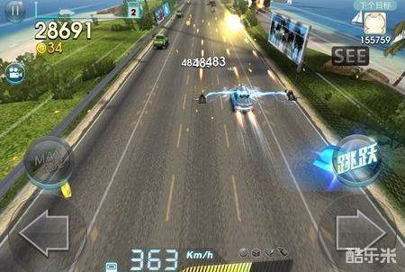当玩家进入“隐身穿越”的状态时,穿越车辆算做一次“惊险超车”,连续多次超车可以获得COMBO连击数,连击数越多,得到的分数加成就越多。