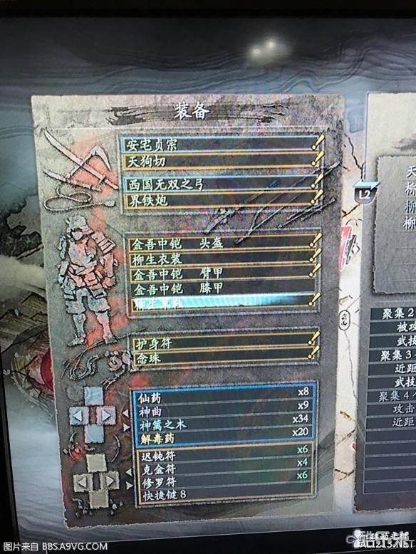 安宅贞宗,天狗切,金吾头,手,裤,柳生身,脚,加上八尺勾玉,就是柳生4+金吾5