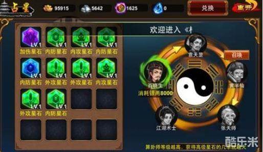 通过点击算卦按钮即可开始算卦,而左侧将会开始显示获得的星石。相信细心的玩家已经注意到,只要随机到的算卦师越强劲获得的星石品质也将更好;
