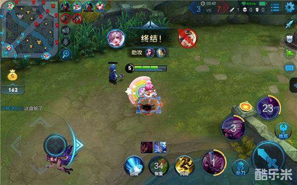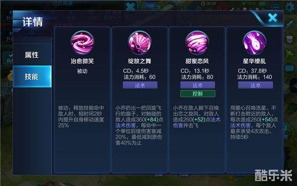 小乔的被动是技能命中敌人增加自身移动速度,配合召唤师技能疾跑可以更好的追击或者撤退。
