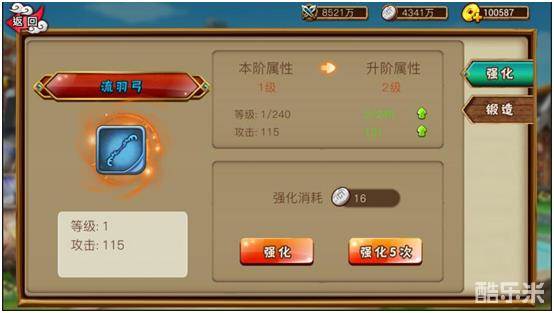 消耗银币对装备进行强化,提升装备的基础属性