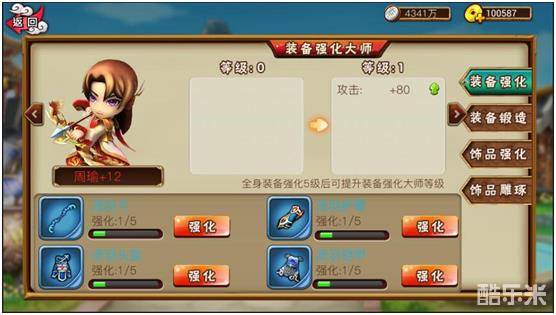拥有了一身好装备,并不等于天下无敌,主公也需要时时刻刻惦记着对装备进行强化和锻造~