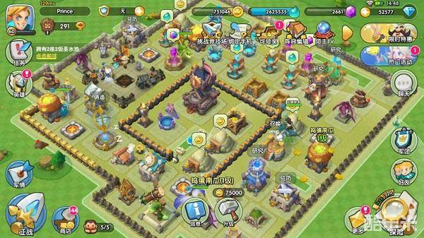 游戏的养成要素,除了策略和英雄卡牌配合上的差异,还有数值成长。而这部分英雄培养,建筑造建可以通过日常任务、对战等途径获取对应资源,以此来提升防御性,和建筑的生命值、攻击力。而《领主总动员》的建筑十分多样,而其中建筑的分类大致可分成:功能建筑、防御建筑、资源建筑。