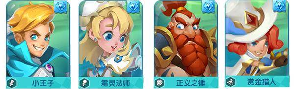 霜灵法师(范围输出)+赏金猎人(远程射手)+小王子(单体输出)+正义之锤(肉坦)
