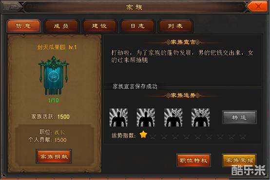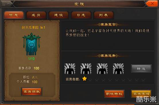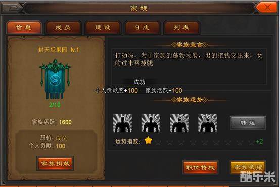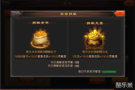 我们通过功能按钮家族捐献,可以对家族做贡献哦,提升个人的贡献度。【图2】