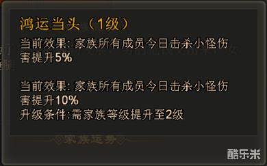 下面小编要说福利了哦,每个进入家族的小伙伴,每天可进行一次家族运势的转运。 小编专门看了下,是一个相当实惠,服务大众的玩法哦。 小编列下这些运势的效果,大家就知道啦。