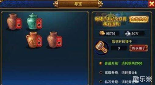 1、普通升级(罐子有极高概率会破裂):需要消耗银两2000;