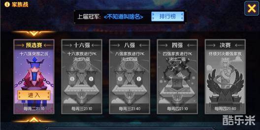 家族战,分为预选赛、十六强PK赛、八强PK赛、四强PK赛、决赛,那么家族战怎么打呢。