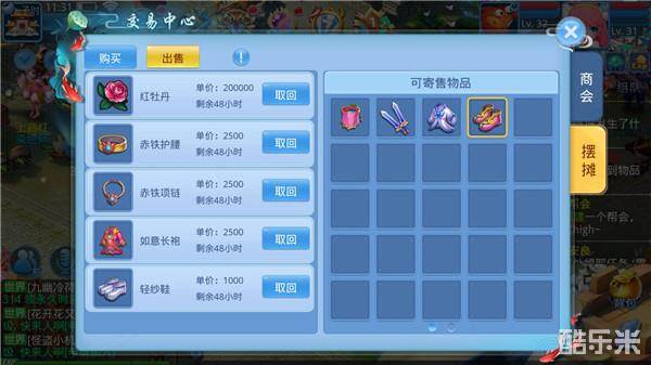 5、交易中心出售道具----平时获得古董等道具、辅助技能制作的物品,都可以在交易中心上架,出售给需要的玩家,生意好的话,可能你会发财。