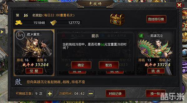 玩家通过主界面的右上角(玩法)按钮点开选择竞技场,然后选择自己的对手挑战即可