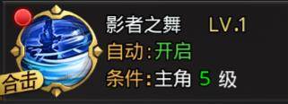 影者之舞,在目标角色的四周释放多个快速穿梭的残影,造成(主角110%+英雄100%)攻击力+1000点伤害,对怪物则造成5倍伤害。