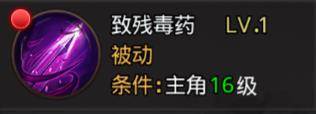 攻击有4%几率使敌人产生中毒效果,减少15%防御和10%速度,持续5秒,最大叠加两层,中毒瞬间将丢失500生命。(随着技能等级的成长,伤害也会成长)