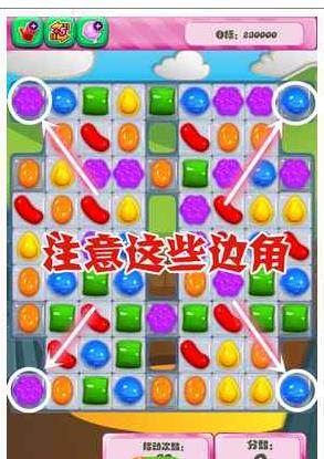 3.最重要的是时刻注意边角比较难交换的果冻,因为最后可能剩下的就是他们,所以一定要敏锐捕捉到消除边角果冻的机会。