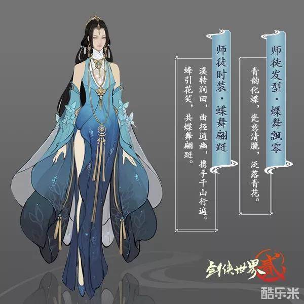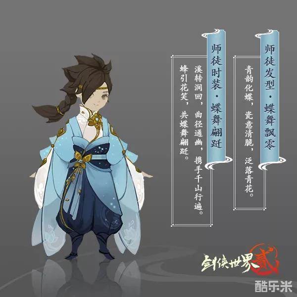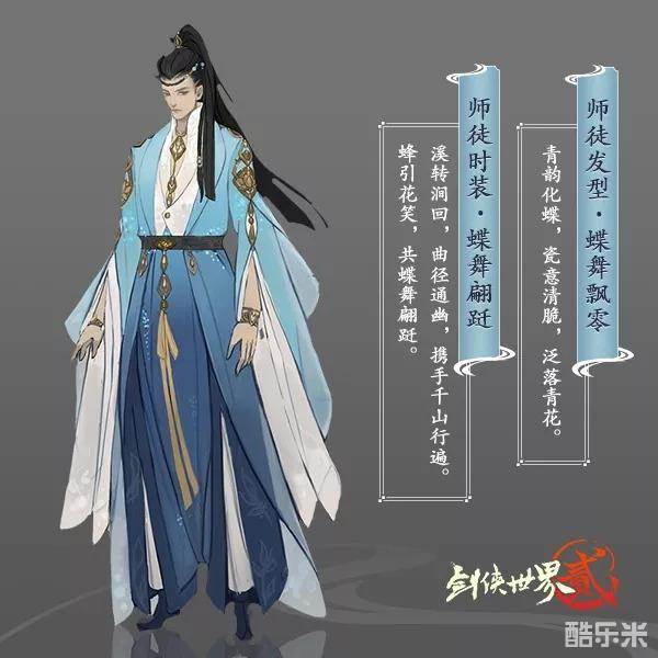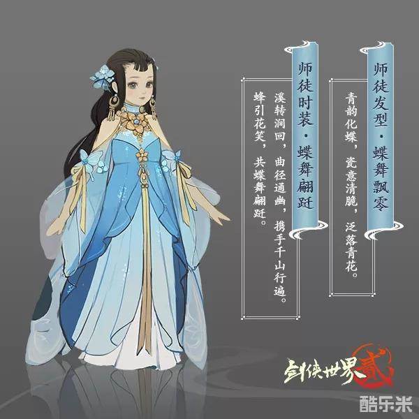 全新师徒主题时装、发型“蝶映初心”、“锦桃厚礼”活动中的全新披风、奇兵原画今日首曝!蜂引花笑,共蝶舞翩跹。蓝白相间的配色蕴含书香婉韵,矜持文雅体现师徒之礼,广袖宽摆,高雅中不失时尚的气质。