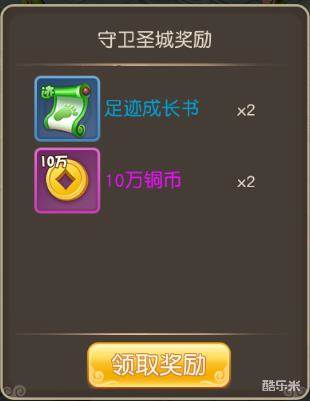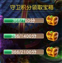 守卫积分达到一定数额可开启宝箱,里面有足迹成长书和大量铜币!