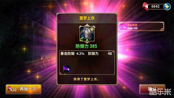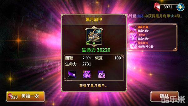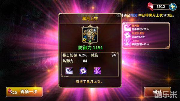 六星的“黑月上衣”,玩家可以直接抽取的最高等级装备,拥有三个技能增幅点,所有属性全面提高。