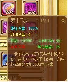 萝卜飞刀:有点像之前的萝卜镖 不过那是六发这是一发 ,可使对方眩晕,有点类似猴子的当头一棒,可留可不留;