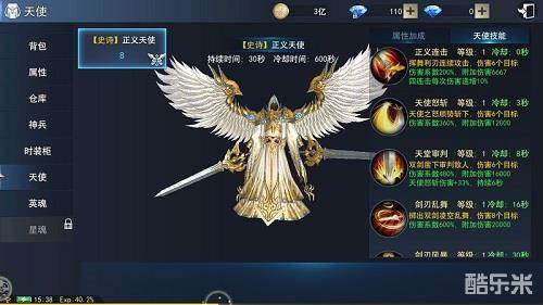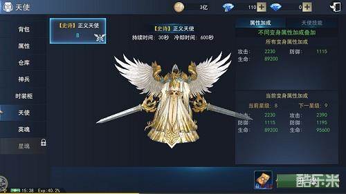 玩家们可以天使变身将其看作是一个强力大招。激活天使变身技能后,角色将在30秒内变身为天使形态,获得正义连击、天使怒斩、天堂审判等威力强劲的天使技能帮助玩家作战。但需要玩家们注意,同时变身冷却时间为10分钟,在大部分战斗中只能使用一次,需要判断时机使用天使变身。