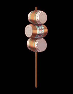 木质的鼓身上绘有精致花纹,纯皮制鼓面用铆钉仔细固定,三个小鼓逐级叠加,组成这个古老的乐器,轻轻敲击鼓面,高低错落的鼓声响起,十分悦耳。