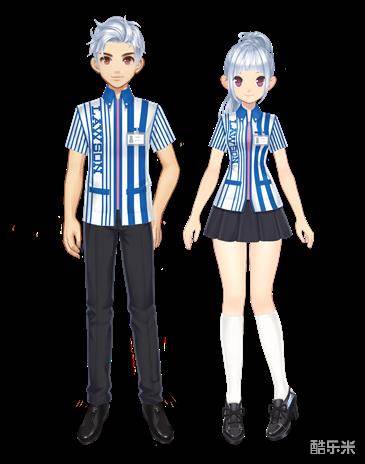 穿上罗森专属套装,你就是合格的罗森店员啦~蓝白色条纹衬衫上印有LAWSON的店名,胸前细节的设计了名牌,男生的西装裤修身挺拔,女生的百褶裙俏皮低调,搭配脚上的亮黑色皮鞋,制服风一百分!