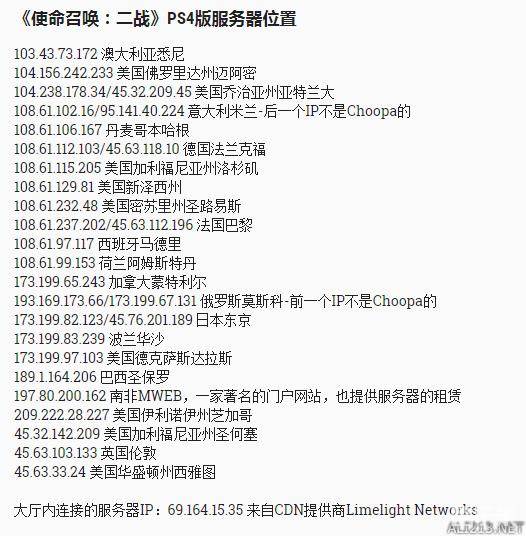《使命召唤14:二战》ps4部分服务器位置介绍 怎么样延迟低?