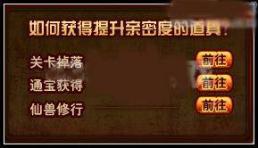 参加每周活动或者使用道具,能提升亲仙兽密度,仙兽战斗属性也会增加。转生后仙兽等级不变、护法不变哦!提升仙兽亲密度目前的道具主要是爱心饼干!可以在魔界大陆副本获得也可以通过通宝购买获得,还可通过仙兽修行获得!每个饼干是2通宝!