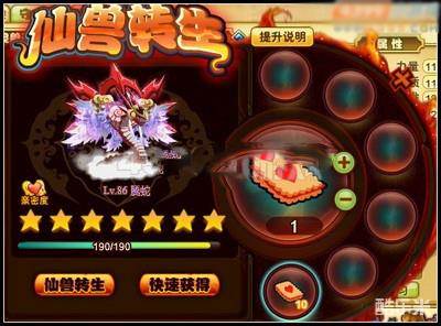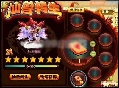 点击现在就去直接到达神兽面板!点击神兽面板下方的仙兽转生按钮进入仙兽转生界面!