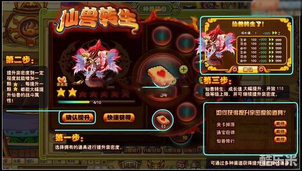 当亲密度的星星满了之后就可以转生啦!点击仙兽转生即可转生,转生之后仙兽将会更强哦!而且转生之后还能继续提升亲密度来使仙兽变得更强哦!不过这里还是需要提醒下大家:角色一定要转生,仙兽才能转生哦!为了更加强大的仙兽大家加油吧!