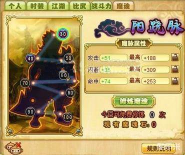 点击现在就去直接到达个人信息面板,然后选择魔魂按钮进入魔魂修炼界面!