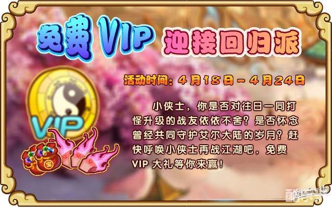 小侠士,你是否对往日一同打怪升级的战友依依不舍?是否怀念曾经共同守护艾尔大陆的岁月?赶快呼唤小侠士再战江湖吧,免费VIP大礼等你来赢!