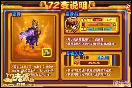 我们每次变身需要消耗1个变身符,变身时间为180秒,提升星级可以提升变身时间和增加属性!