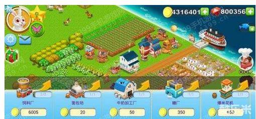 3.然后在农田里种植一些玉米,等收割后就点击饲料厂生产鸡饲料了,一次能生产三袋饲料,需要三袋玉米和5分钟时间。