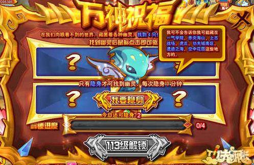 在我们肉眼看不到的世界,藏匿着各种幽灵,找到4只作恶的幽灵将他们出去即可解锁。作恶的幽灵藏在一气学院、赤炎海山、上古战场、虎丘、功夫城南区、遗迹之海、空中花园这些地方哦~但是我们只有隐身才可找到幽灵,每天有2次隐身的机会,每次隐身为3分钟!所以海姐建议小侠士在隐身之前要先找好地方哦!毕竟一天的机会只有2次。