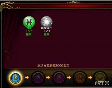 占星系统中一共有五个层级的占星键,每次只能点击亮起的按钮。每一次点击都需要花费一定的金币来进行。点击占星之后会占卜出一个结果(星运)生成在界面中。每次点击后占星后都有一定概率激活下一层的占星键,如果失败则重新从1级开始。占星键的层级越高会获得更高品质的(星运)运,(星运)运可以用来互相吞噬,来获得经验提升来等级。
