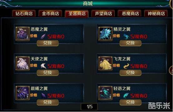 2.参加游戏活动魔界争霸赛有几率获得翅膀碎片,集齐相应数量的翅膀碎片,可在圣器商店兑换翅膀。